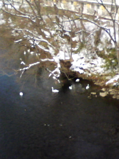 湖にいるのが大きな群れだけど、川にいるのも多いです(この写真もうちの近くの川)。