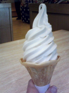 のある道の駅で食べられるのですが、そこへ行くと必ず食べます。 でも、今日その「ひとめぼれソフト」を食べていたら、ジェラートのアイスケースも目に入り、よく見たら安いの!
