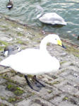 別のおじさんが、白鳥めがけて一生懸命パンを投げてやるのに、回りの鴨に全部取られて、おじさんが「あ~、また取られた…」とがっかりしてました。