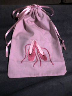 お友達が刺繍して作ってくれたバレエシューズ入れ。